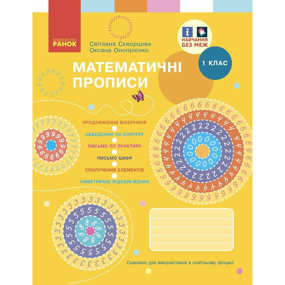 Посібник зручно використовувати на уроках математики та під час домашніх занять. Він стане корисним для учнів 1 класу, учителів початкової школи та батьків. Замовити математичні прописи для 1 класу ви можете в інтернет-магазині ShopBook — для впевненого старту в навчанні.