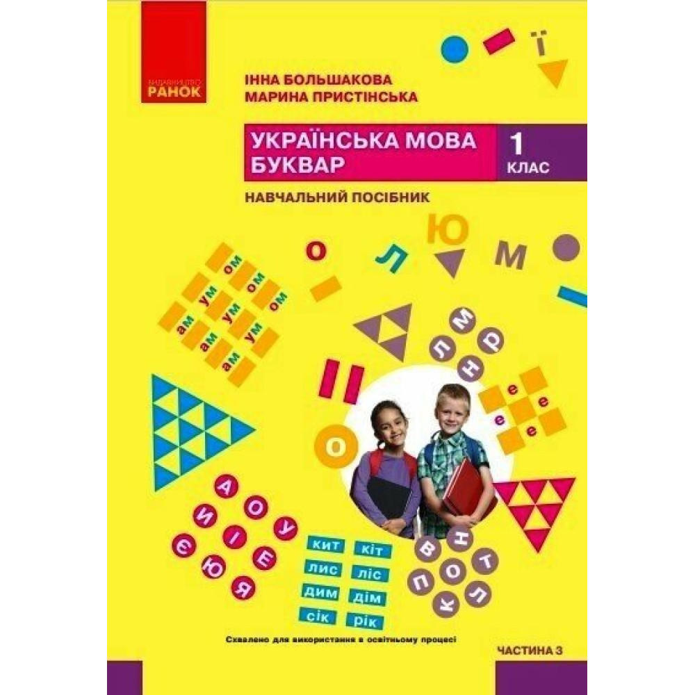 Навчальний посібник «Українська мова. Буквар» — Частина 3 створено відповідно до вимог закладів загальної середньої освіти (ЗЗСО) і призначено для учнів 1 класу як третя частина навчального комплекту з шести посібників. Видання розроблене авторками І. О. Большаковою та М. С. Пристінською та покликане забезпечити систематичне опанування навичок грамотного читання, письма та усвідомленого використання української мови.