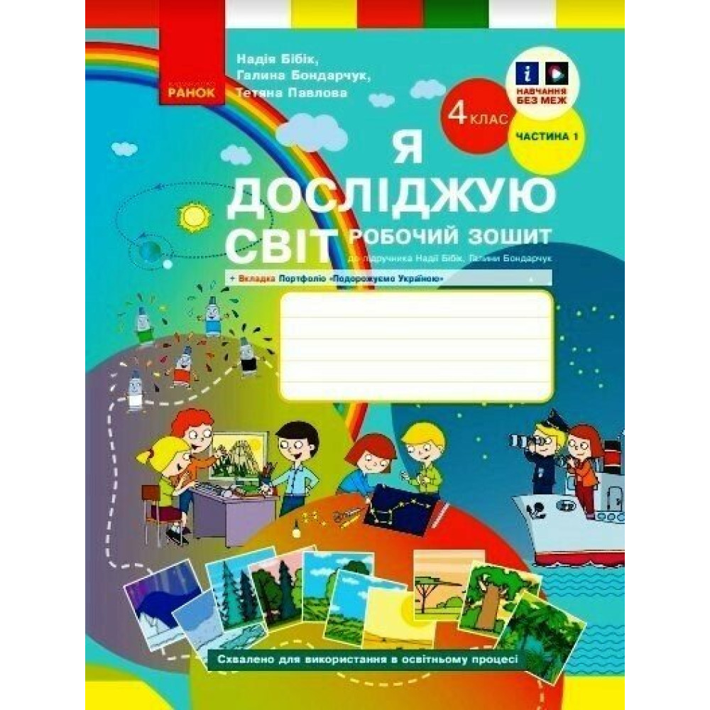 Робочий зошит «Я досліджую світ» для 4 класу — Частина 1 — навчальний посібник, створений відповідно до вимог Нової української школи (НУШ) і призначений для систематичного закріплення знань з інтегрованого курсу. Цей робочий зошит містить різноманітні вправи дослідницького й практичного характеру, творчі завдання, логічні вправи та тестові завдання, які дозволяють учням поглиблено опрацьовувати теми, передбачені навчальною програмою.