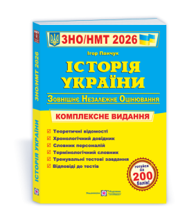 Посібник «Історія України. Комплексна підготовка до ЗНО/НМТ 2026» призначений для учнів старших класів та абітурієнтів, які готуються до складання національного мультипредметного тесту з історії України. Видання укладене відповідно до чинної програми Міністерства освіти і науки України та вимог тестування.